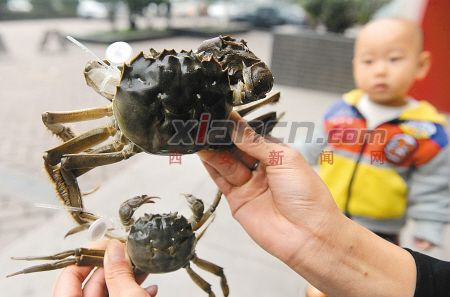 昨日(21日)在高新区科技路团结南路十字西北角一家阳澄湖大闸蟹西安直营店,来了两位特殊的“贵宾”:蟹王和蟹后。